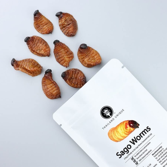 Our bags contain approximately 4-5 large dehydrated and seasoned sago worms. 10g Net Weight.